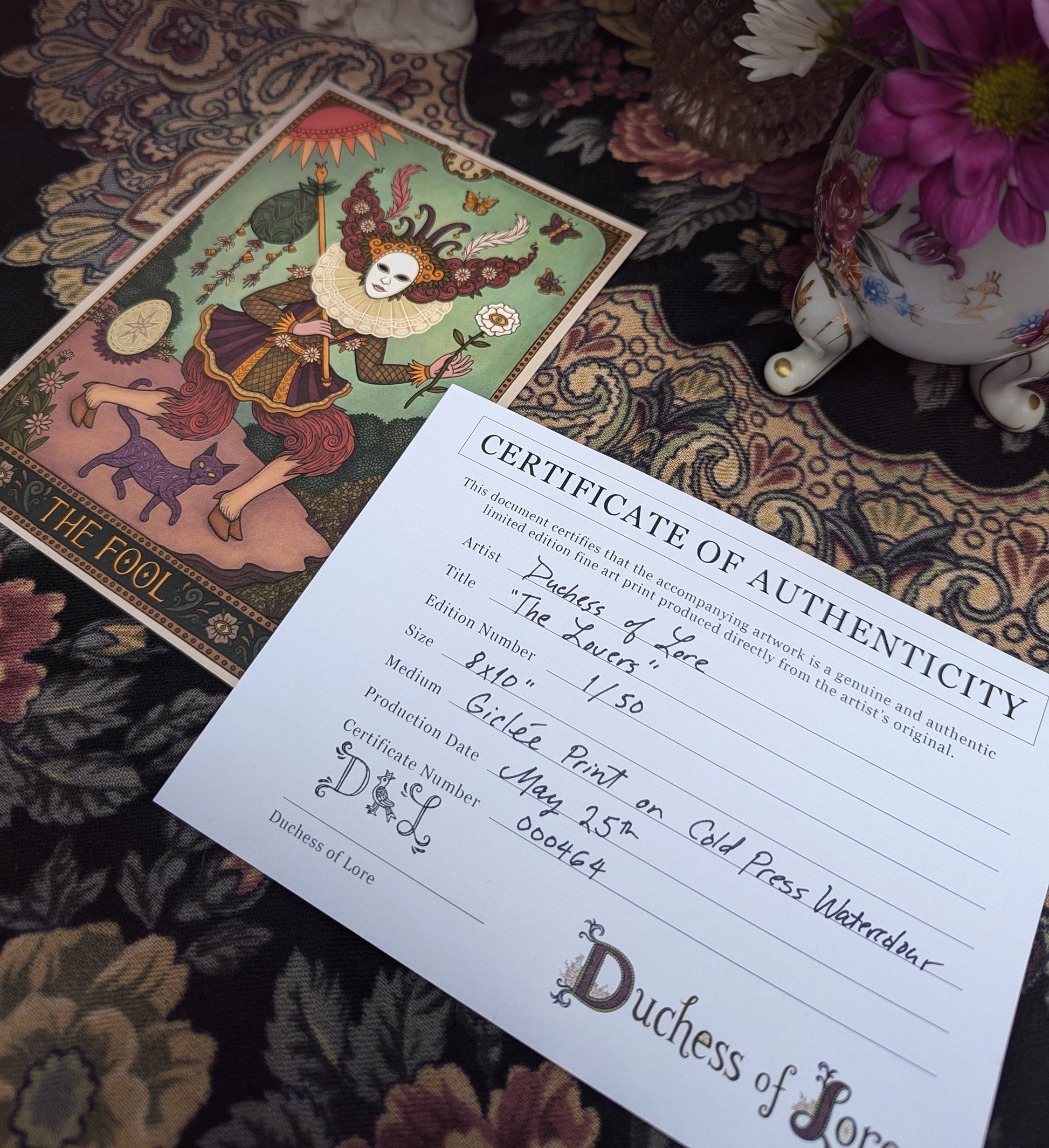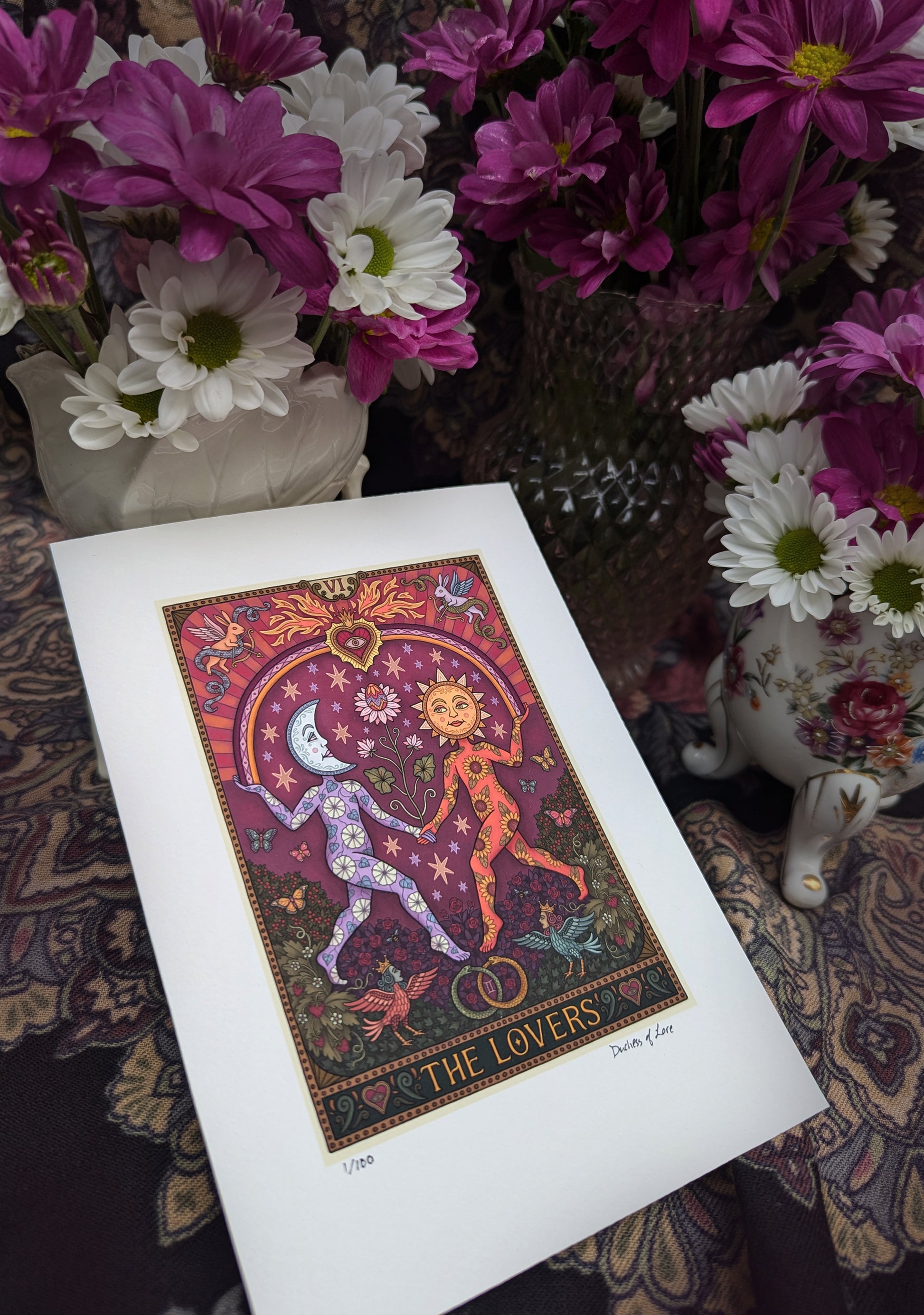 - Tarot-Sized (5x7") – A jewel-sized edition echoing the proportions of a traditional tarot card. Ideal for altar spaces, framed vignettes, or personal rituals. Limited to 100 signed and numbered prints.