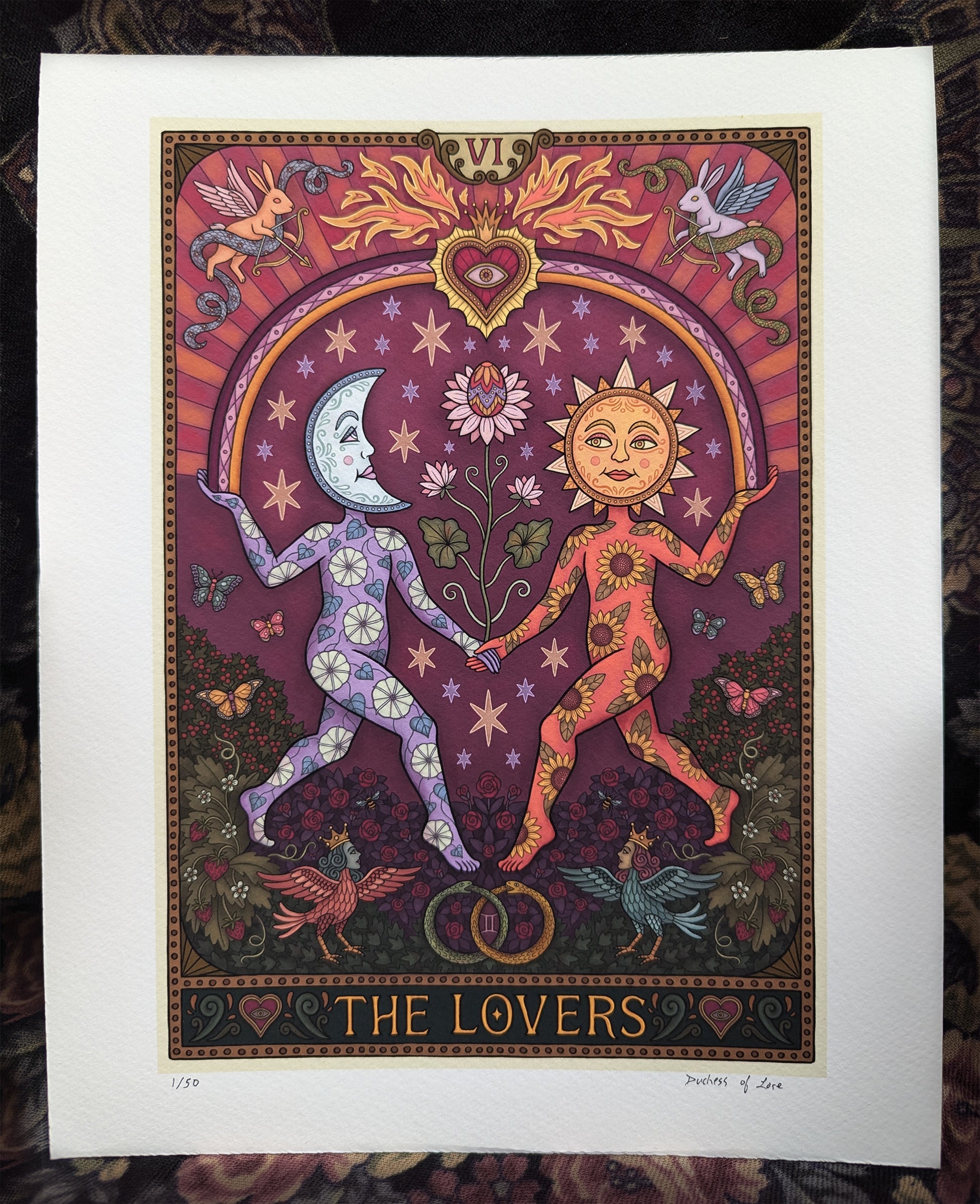 The Lovers is available in two formats, each giclée printed with archival inks on velvety cold press watercolour paper, capturing every luminous detail.